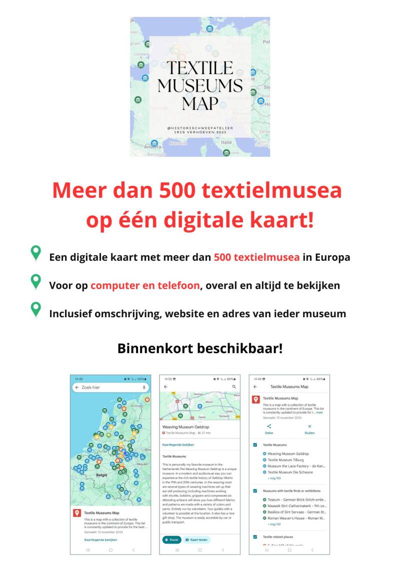 Het maken van deze kaart heeft mij inmiddels al meer dan een jaar gekost. In de officiële kaart staan al meer dan 500 (!) musea! Heb jij nog suggesties of weet jij nog leuke textielgerelateerde plaatsen die op de kaart moeten? Laat het vooral weten! Alle hulp is welkom.