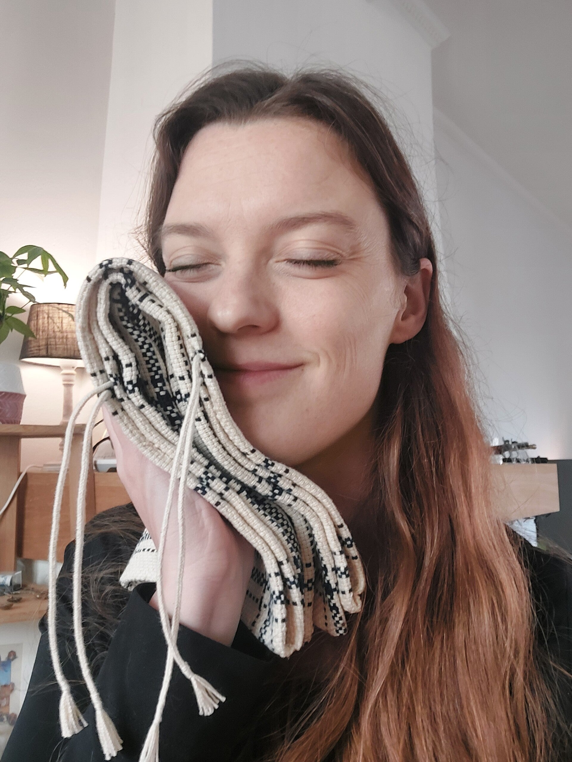 Nadat het einde van de schering dichterbij kwam, kreeg ik een dubbel gevoel.. Dit heb ik altijd als het einde van een project in zicht komt.. Van de ene kant ben ik blij dat het bijna klaar is, en van de andere kant geniet ik zo erg van het proces dat ik het jammer vind dat het bijna klaar is.